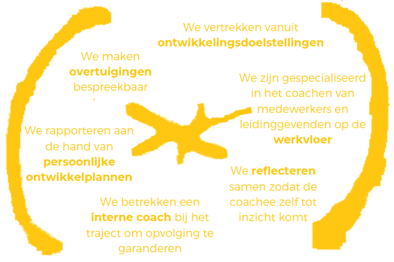 Training is één manier om de persoonlijke groei medewerkers te stimuleren, maar daarnaast zijn we ook gespecialiseerd in individuele coaching van medewerkers en leidinggevenden. We starten steeds met een gesprek met de coachee en zijn leidinggevende rond wat er momenteel goed loopt/misloopt op de werkvloer. Op basis daarvan brengen we dan de ontwikkelingsnoden van de coachee in kaart, die we vertalen naar ontwikkelingsdoelen.